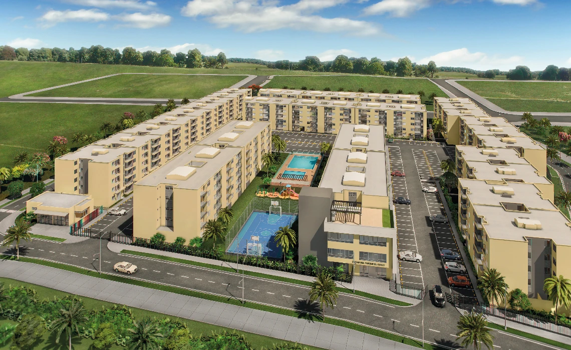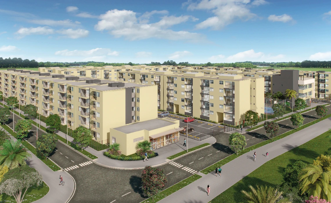 Description: VIS project developed by Constructora MARVAL, consisting of 26 towers of 5 floors high, an open parking lot, swimming pool, and social areas.